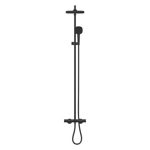 Chladný čtvercový tvar, bezpečnostní funkce a skvělý výkon - matně černý termostatický sprchový systém GROHE Tempesta 250 Cube pro vany je vybaven nejmodernější technologií a dokonalým stylem.