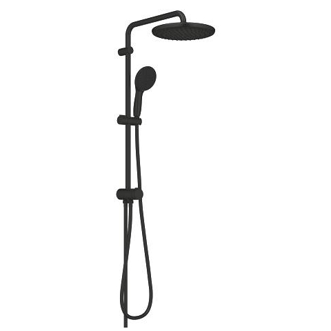 Tento sprchový systém GROHE Tempesta 250 Flex v úžasné matné černé barvě představuje snadnou cestu k většímu potěšení ze sprchování a k elegantní a pohodlné koupelně. Exponovaný systém pro montáž na stěnu se skládá z hlavové sprchy o průměru 250 mm, ruční sprchy o průměru 110 mm, přepínače (pro přepínání mezi nastavením ruční sprchy, hlavové sprchy nebo hlavové sprchy eco), 620mm kolejnice s 390mm ramenem a posuvným prvkem pro nastavení ruční sprchy, dále 1750mm TwistStop a 500mm hadice. Hlavová sprcha nabízí jemný, relaxační proud Rain Spray. Ruční sprcha se dodává se silikonovým kroužkem ShockProof, který ji chrání před pádem nebo nárazem. Má 3 druhy postřiku: jemný Rain, výkonný a cílený Jet a osvěžující masážní sprej. K oběma je snadný přístup pomocí inovativního přepínače GROHE SmartSwitch na zadní straně sprchové hlavice. A omezovač průtoku GROHE Water Saving výrazně snižuje spotřebu vody, aniž by to bylo na úkor výkonu. Technologie GROHE DreamSpray navíc zajišťuje vyvážený proud vody ze všech trysek. Vaše sprcha tak bude maximálně komfortní a plná prožitku. Silikonové trysky SpeedClean jsou navrženy tak, aby se pouhým otřením zbavily vodního kamene. Odolná a snadno udržovatelná povrchová úprava GROHE Long-Life udržuje sprchový systém v bezvadném stavu i po letech používání. Díky flexibilní instalaci a snadnému připojení pomocí 500mm hadice je tento systém kompatibilní se stávající sprchovou baterií a umožňuje rychlou modernizaci.